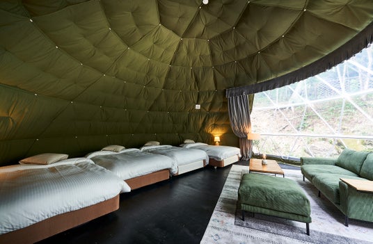 ドーム型客室は全4棟。室内はホテル並みの設備と充実のアメニティを備えます。