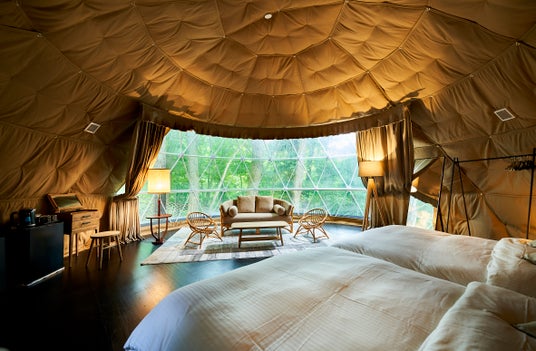 標高700mの森の中。静かな那須の森に包まれる、「特別なグランピング体験」を味わえる。