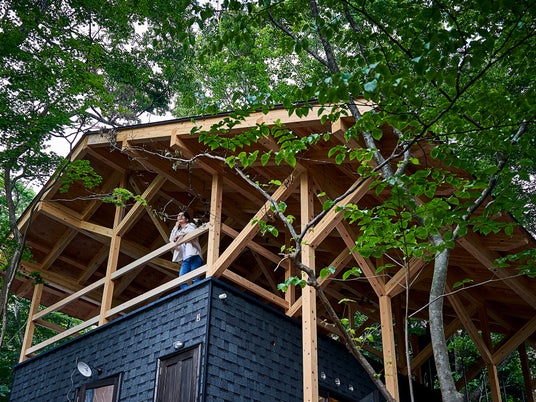 ハイドアウトは「隠れ家」のこと。ツリーハウスがモチーフのメイン棟からは4つの客室ドームへと繋がります。プライベート感を損なうことなく、那須の深い森のなかでゆったりと過ごせます。