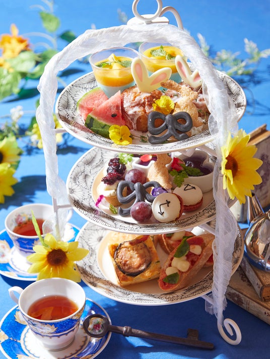 そしてこの度『幻想の国のアリス』で提供する人気のアフタヌーンティーに夏季限定の新作メニューが登場いたしました。「不思議の国のアリス」に登場する人気キャラクターたちが夏ならではの素材を纏い、暑い夏を爽やかに彩ります。