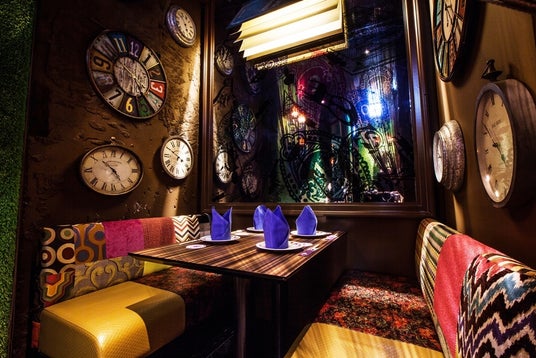 大きな大きなトランプに囲まれるソファー席やハートの女王様ご自慢の庭を模したテーブル席など、不思議の国のアリスのパラレルワールドを彷彿とさせる幻想的な空間が広がります。