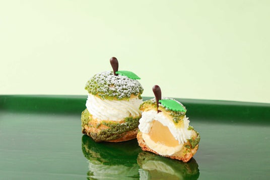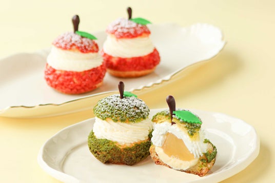 青森県産の青りんご「王林」と、ヨーグルトクリーム、カスタードクリームをたっぷり絞り込みました。フレッシュりんごのシャリっとした食感とヨーグルトクリームのさっぱりとした味わいが合わさった爽やかなシュークリームです。
