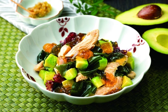 鶏むね肉の蒸し鶏は、鶏ガラや野菜を使用した塩ベースのスープを加え蒸しあげたあっさりとした仕立てで、食べやすいようにほぐしています。アボカドは世界有数のアボカド産地である「ペルー産」を使用しました。