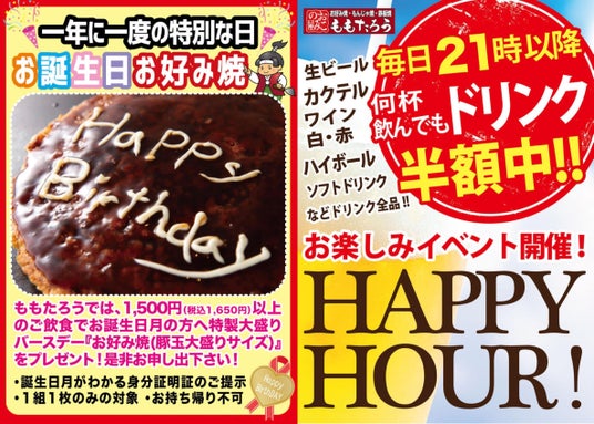 【Birthday♪】年間10,000人以上のお誕生日をももたろうではお好み焼でお祝い♪プレゼント!!