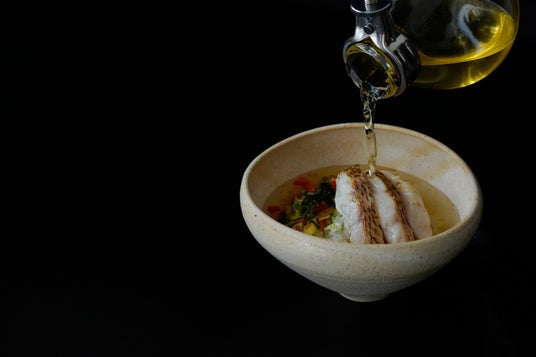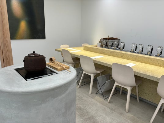 ■barrier(バリア)「barrier=結界」をコンセプトに、賑わいのある金沢市街の中心にありながら、喧騒とは線をひき、界を結して、古えと現代、陰と陽の対比を感じていただく神聖な空間をつくる結界をイメージしました。古民家を繊細にリノベーションした空間は、アートと料理が絶妙に結びつき、お客様が時間や空間を超えた旅に出るかのような体験を提供します。料理は三方(さんぼう)をお膳として利用し、岡持ち(おかもち)に収められた三つのお椀料理に、サイフォンで抽出された一番出汁を注ぎます。伝統と革新が見事に調和した漆黒の空間で五感を研ぎ澄ませて、出汁の新しい世界を体験してください。