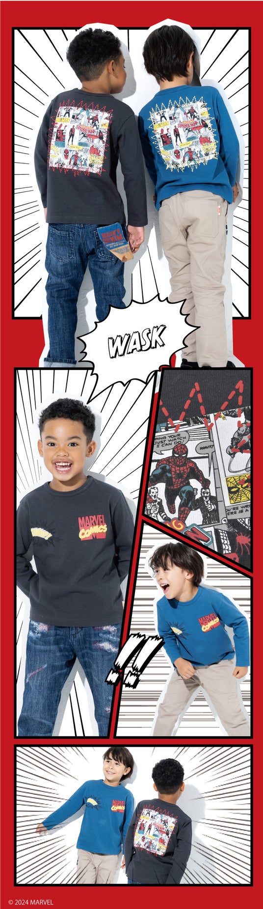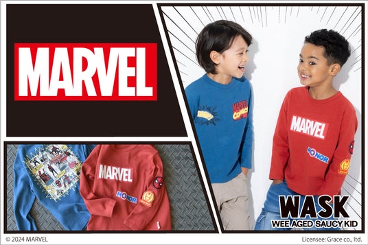 神戸発、子供アパレルの株式会社べべ(本社:兵庫県神戸市、代表取締役社長:卜部 正寿)が展開する「WASK(ワスク)」より、 WASKオリジナルデザインの「MARVER(マーベル)」アイテムが登場。『スパイダーマン』『アイアンマン』『キャプテン・アメリカ』のアイテムを展開。8月2日(金)よりWASK(ワスク)全国38店舗、BEBE公式オンラインストア(BEBE MALL)にて同時発売。