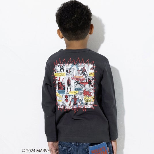 大活躍する『スパイダーマン』のコミックプリントをバックにオンしたキャッチーでカッコいいTシャツ。
