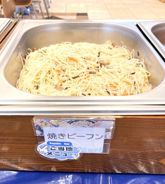 現在、東横INN神戸三ノ宮Iや東横INN姫路駅新幹線北口など兵庫県内6店舗で、日替わりで焼ビーフンやカレービーフン、チャプチェがビュッフェメニューとして用意されています。(2024年7月現在)