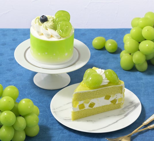 パリッとした果肉からあふれる果汁と、上品な香りで人気の「シャインマスカット」。そのおいしさを存分に楽しめるケーキがそろいました。
