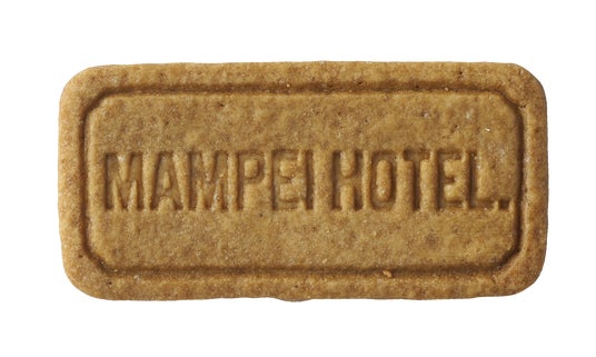 :ホテル創業当時から玄関に掲げられている「看板」をモチーフにしたコーヒー味のクッキー
