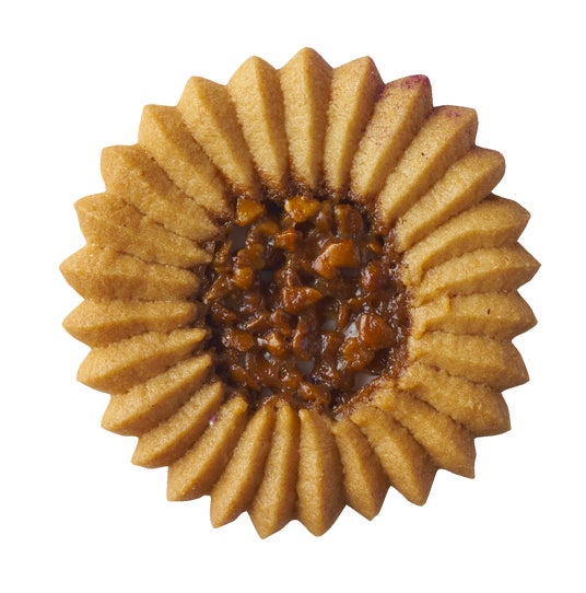 :キャラメルナッツをあしらったお花のかたちのクッキー