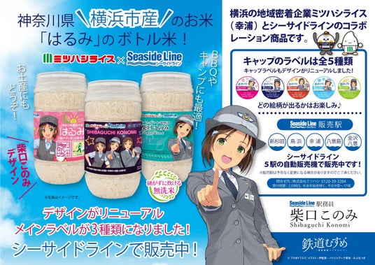 株式会社ミツハシ(本社:神奈川県横浜市、代表取締役:三橋 美幸、以下「ミツハシライス」)は、同じく神奈川県横浜市に本社をもつ株式会社横浜シーサイドライン(本社:神奈川県横浜市、代表取締役社長:猪俣 宏幸、以下「シーサイドライン」)とコラボレーション商品のリニューアルを実施。シーサイドラインの駅構内に設置されているキリンビバレッジ株式会社の自動販売機で販売しています。