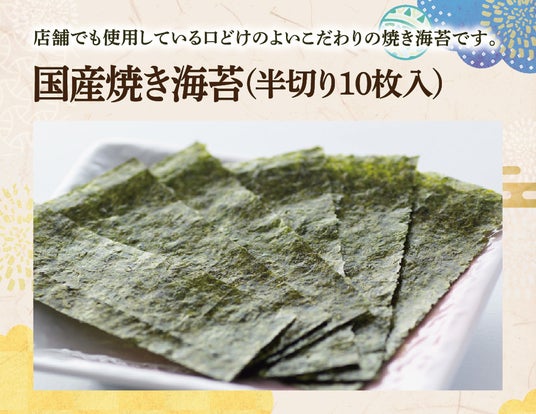 今年のゴールデンウィークに初となる福袋を販売し、全店で累計販売数3,000個を突破。たくさんのお客様にご好評いただきました。今回はクーポンを使いやすくするために、ご利用できる時間帯の制限をなくし、「国産焼き海苔」も追加し内容もパワーアップしました。今後もお客様に喜んでいただける福袋の販売を企画してまいりますのでこうご期待くださいませ。
