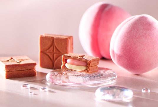 期間限定で登場する「バターサンド〈桃〉」(5個入 1,404円)は、濃厚で甘酸っぱい桃ガナッシュと桃ジャムを練り込んだ桃バタークリームをサクサクのクッキーで挟みました。かじると2層の美味しさがとろりとあふれだし、桃そのものを食べているような味わいが口いっぱいに広がります。