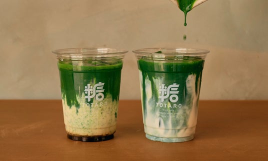 右)和三盆抹茶ラテ:801円(税込) ※イートイン価格 左)黒糖抹茶ラテ :801円(税込) ※イートイン価格