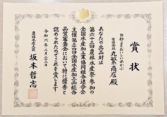 【2023年11月】第34回全国水産加工品総合品質審査会 最高賞「農林水産大臣賞」受賞