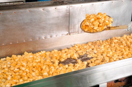 熟練の職人が美味しく出来上がるタイミングで丁寧に手揚げをする様子