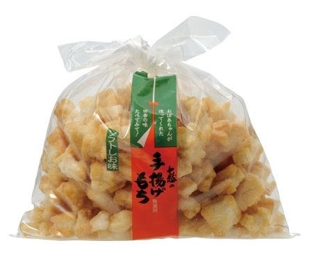 「手揚げもちしょうゆ味」は、おばあちゃんがつくってくれた田舎の味。その懐かしい揚げもちを再現しました。