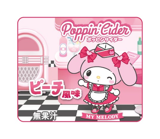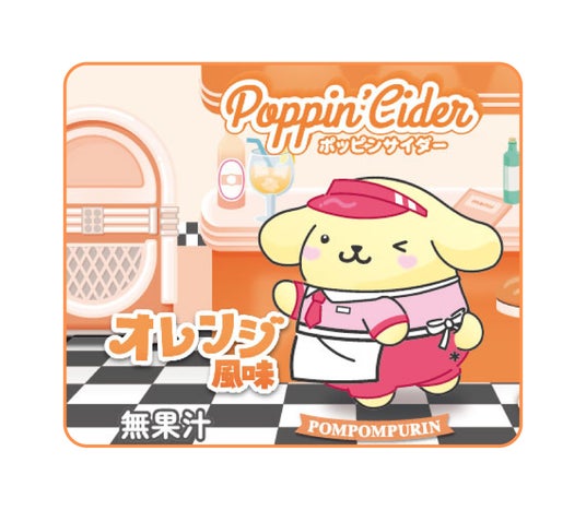 アメリカンダイナーの店員になったサンリオのキャラクターたちが出迎える、レトロポップなパッケージデザイン。ダイナー気分を存分に楽しんでいただけるよう、ちょっと珍しいアメリカンチェリー風味やブルーレモネード風味のサイダー、見た目もポップなピーチ風味やオレンジ風味のフレーバーのサイダーを新たにラインナップしました。アメリカンダイナーの世界感をたっぷりとお楽しみください。