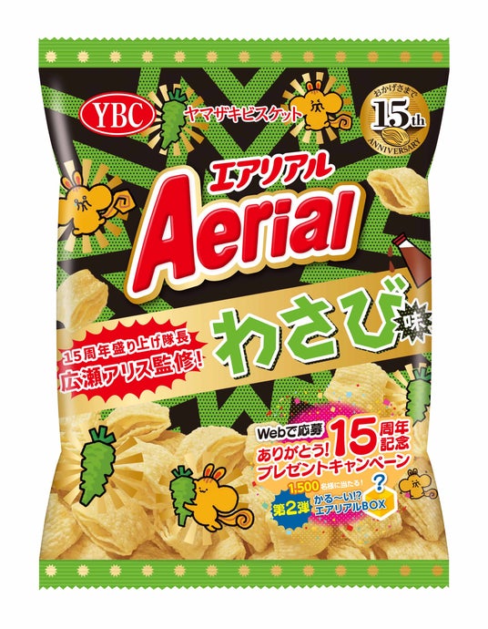4層構造によるサクサク食感が人気のコーンスナック「エアリアル」は今年発売15周年を迎えます。食べたら分かる独特の軽い食感は、心も体も軽くなる? そんなエアリアルのファンであり、2019年以来エアリアルのCMに出演いただいている広瀬アリスさんが、「15周年盛り上げ隊長」として、エアリアルをサクサクと頬張る姿は必見です。隊長の勢いは止まらず、WEB限定動画「#サクッと盛り上げ15連発」にも挑戦します。その中で、広瀬さんが自ら新たに誕生させたマスコットキャラクター「エアリッス」との、かわいらしい掛け合いが微笑ましいテレビCMが完成になっています。2024年8月からは広瀬アリスさんがプロデュースした「わさび味」の発売に合わせて、「みんなでサクッと」篇が新たに公開されます。