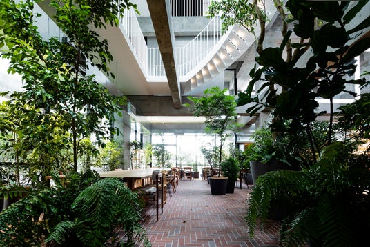 日本を代表する建築家の藤本壮介氏が設計した、大胆な4層の吹き抜けや螺旋階段があり、トップライトからは燦々と光が降り注ぐ緑ゆたかな空間です。まるで美術館のサロンのように、世界的なアーティストによるさまざまなコンテンポラリーアートを愛でながら、スタインウエイのピアノ自動演奏やライブ演奏をはじめ、世界中のインテリアも楽しめる場です。前橋のまちのリビングとして、おひとりさまから、お仲間やご家族との集いにいたるまで、多様な飲食の機会にご利用いただけます。朝食(要予約)、昼食、ティータイム営業。夕方17時からはアートラウンジとして、ご宿泊のお客様はアート作品の色の移り変わりを楽しみながら、無料で自由にお飲み物などをお召し上がりいただけます。