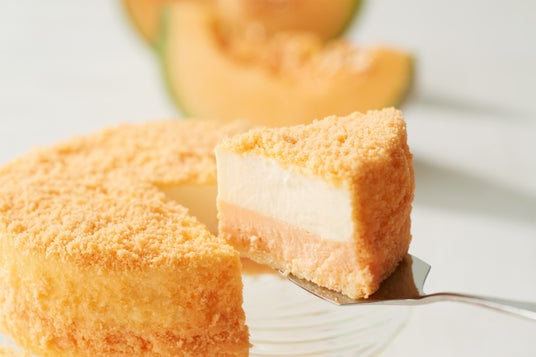 上層には北海道産生クリームとイタリア産マスカルポーネのレアチーズ。下層には北海道産赤肉メロンピューレを使用したベイクドチーズケーキを使用し、赤肉メロンのスポンジクラムで包み込みました。赤肉メロンのふくよかな甘味がしっかりと感じる味わいです。