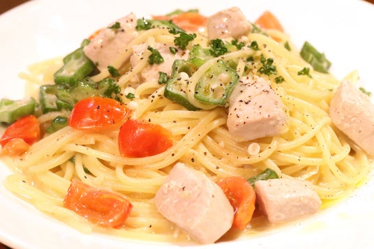 魚と柑橘系の相性の良さを堪能できる「マグロとオクラのアンチョビレモンバターパスタ」は、爽やかながらコクの深い、さっぱりとした風味が口いっぱいに広がり夏を感じられる一皿。レモンの酸味がマグロのうまみをより引き立てます。