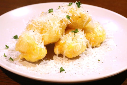 とうもろこしのフリットに、相性抜群のはちみつとチーズを合わせました。とうもろこしの甘味とチーズの塩味はお酒が進みます。