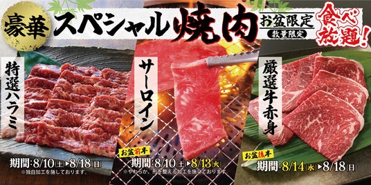 焼肉・寿司・スイーツ食べ放題レストランチェーンの「すたみな太郎」(運営元:株式会社江戸一、本社:東京都足立区、代表取締役社長:珊瑚 卓哉)は、2024年8月10日(土)より8月18日(日)の期間、お食事料金はそのままにスペシャル焼肉メニュー3品を、食べ放題メニューとして特別にご提供いたします。お盆の帰省など、ご家族やご親戚、ご友人とのお食事機会も増えるこの時節、日頃のご利用の感謝を込めてお盆シーズンのお食事を彩る豪華焼肉メニューを期間限定、店舗限定でご提供いたします。※各商品とも、反響等により、店舗により早期にご提供終了となる場合がございますので予めご了承ください。