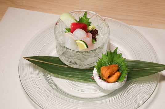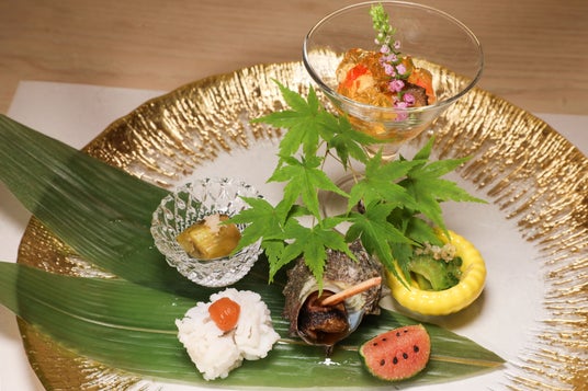先付けは蓮の葉を使用し、涼し気な演出からコースが始まります。