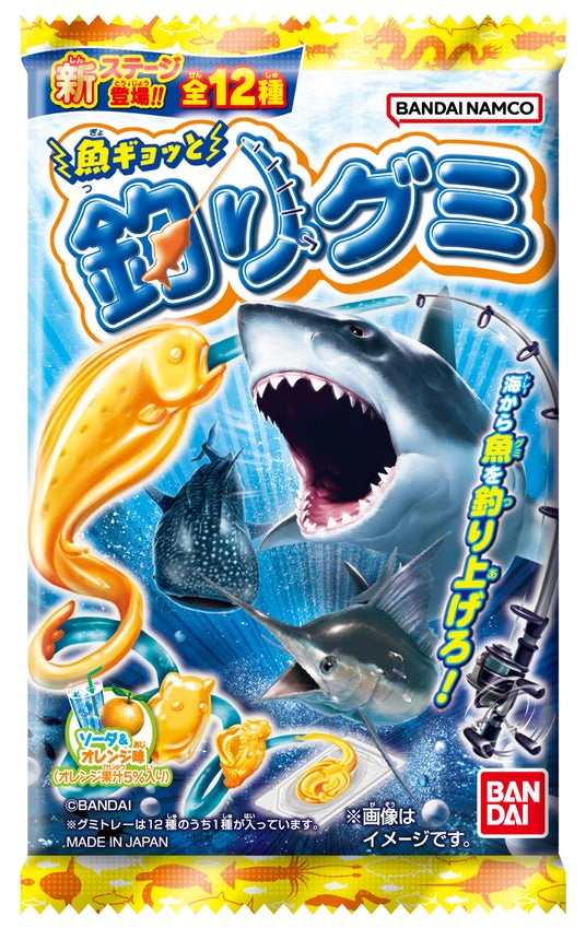 「魚ギョッと釣りグミ」は、2020年に発売を開始した株式会社バンダイのオリジナル菓子で、トレーからグミをちぎれないようにつり上げるエンターテイメント菓子である「つりグミ」シリーズの代表的商品です。