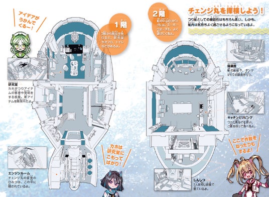 フルカラーのイラストで、魅力的なキャラクターたちを解説。また、物語の中ではくわしくはわからない船の中のイラストを見ることもできます。