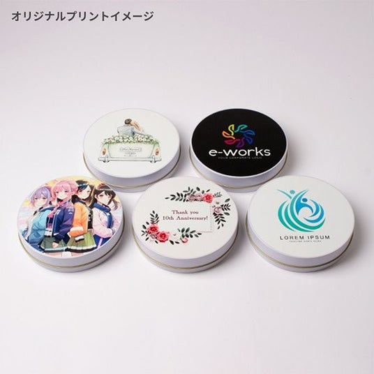 「Cake.jp ノベルティ缶」とは、当サイト内でも人気の「ケーキ缶」や常温で取り扱いができる「アーモンドチョコレート丸缶」のラベルをお好きなデザインにプリントできるサービスです。
