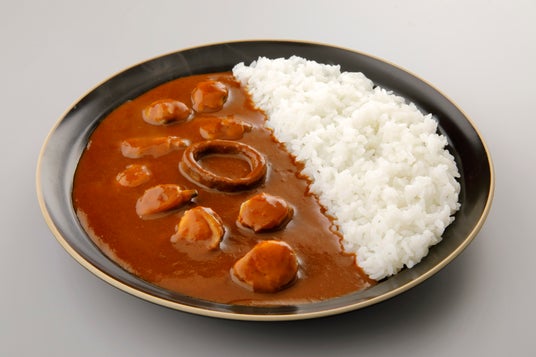 北海道噴火湾帆立シーフードカレーの盛り付け例