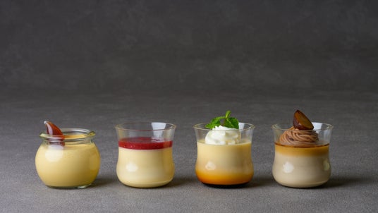 左から マデラプリン、ベリープリン、なめらかプリン、マロンプリン