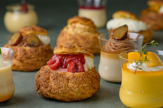 左から プレーンシュークリーム、ベリー、塩キャラメル、パッションフルーツ