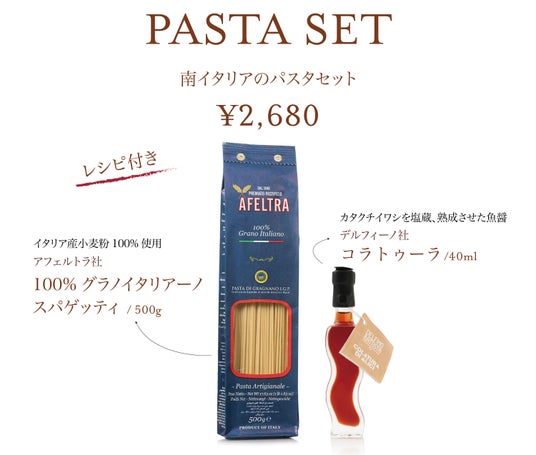 「レストランで体験した味をご自宅で」を手軽に楽しめるレシピ付きのパスタセット。