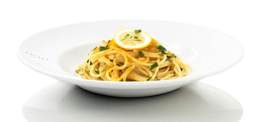 ボッタルガとコラトゥーラの好相性にレモンの爽やかな香りが食欲をそそります。