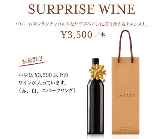 毎年恒例のサプライズワインを今年も開催します。価格未満のワインは一切含まれていませんので、お得なお買い物になります。