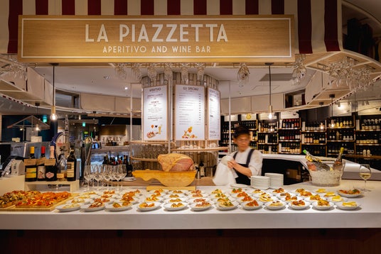アペリティーボバー「LA PIAZZETTA」はいつでもワインやカクテルを片手にアペリティーボを楽しめ、ランチでもご利用いただけます。
