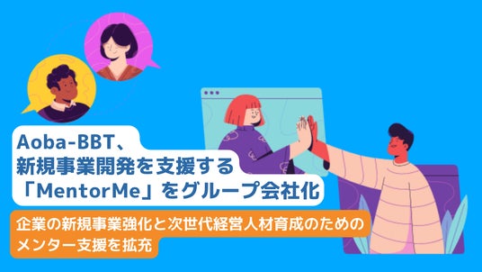 株式会社Aoba-BBT(所在地:東京都千代田区、代表取締役:柴田 巌、以下Aoba-BBT)は、企業とメンターをつなぐマッチングプラットフォーム「MentorMe(メンターミー)」を運営するMentorMe株式会社(所在地:東京都千代田区、代表取締役:宮本 圭介、以下MentorMe)をグループ会社化することを発表いたします。これにより、Aoba-BBTは新規事業開発支援の市場に本格的に参入し、企業の新規事業創造と次世代経営人材育成を強化することを目指します。
