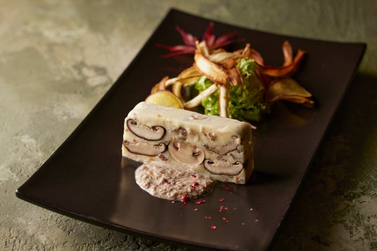 ・アッシ・パルマンティエと茸のテリーヌ 根菜のフリット添え