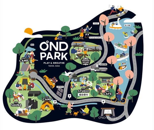 ONDPARKは、「武雄の恵みで温度があがる」をコンセプトに、2023年4月に誕生しました。武雄の自然や人々とのつながりを全身で感じられる場所として、周辺地域の魅力を大切にしています。年間を通じて星の観望や春には桜、初夏にはホタルの乱舞や青々と茂る自然が残されています。自然観察ができる地域として古くから愛されており、開発においても自然に配慮した取り組みを進めています。これからもONDPARKは、周辺環境や自然、人々とのつながりを大切にしながら、武雄の温度をさらに高めていく役割を果たしていきます。
