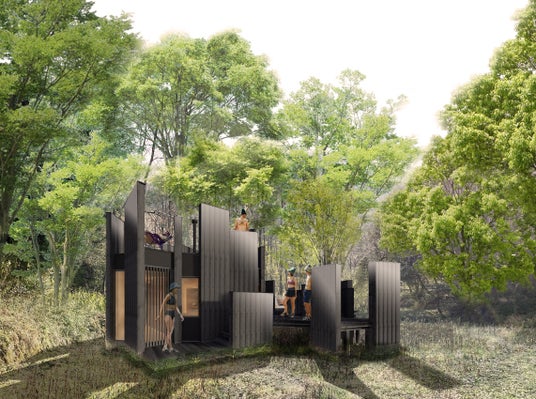 陰陽五行をテーマにしており、「木のサウナ」では樹木と同じ高さに上がって森を見ることで“成長”を体験でき、「金のサウナ」は金属フレームを通して森と向き合うことで“秩序“によって守られていることを体験できます。五行の観念を具現化することで、この地の自然を最大限に体感し、原体験へと誘います。今回の開業では木・火・金のサウナが完成します。