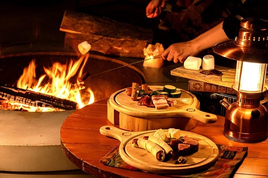 イベント当日は、焚火を囲みながら楽しんでいただけるお料理を中心にご提供します。通常は宿泊者専用のメニューであるスタッフ一押しの「UNWIND オリジナルピザ」をはじめ、焚き火で炙って楽しむ体験型のメニューなどもご用意いたします。