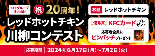 KFC夏の定番商品「レッドホットチキン」は、2004年の発売以降、大変多くの皆さまにご愛顧いただき、今年で20周年を迎えることができました。自社商品への愛着度を高め、より一段高い商品体験をお客さまにお届けするための取り組みとして、KFCグループ内の全従業員を対象とした「祝20周年!レッドホットチキン川柳コンテスト」を実施いたしました。KFC初となる本取り組みには総勢1,067人が参加、寄せられた総数は1,835句に上りました。応募者は「レッドホットチキン」を食べた時、心を込めて調理した時、お客さまに商品をお渡しした時など、それぞれの「レッドホットチキン」にまつわる想い出を、五・七・五の川柳で表現しました。特別審査員には、多数の公募川柳の選者・監修などでご活躍されている川柳作家のやすみ りえさんをお迎えし、厳選の結果、受賞5作品を決定いたしましたのでここに発表いたします。