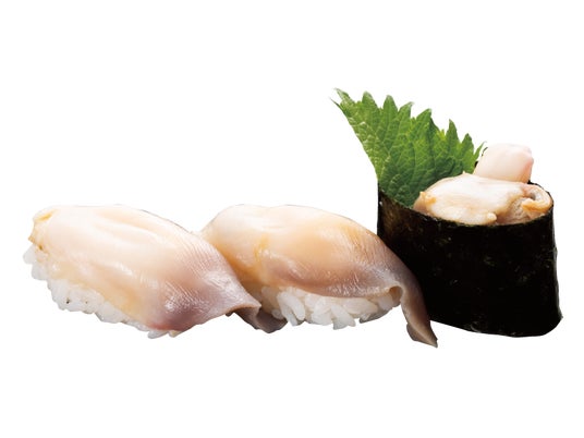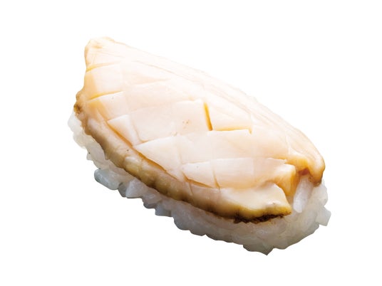 身はぷっくりと厚く、濃厚な貝の旨味があふれる青森県産の北寄貝を貝ひもとともに三貫盛りでご用意しました。