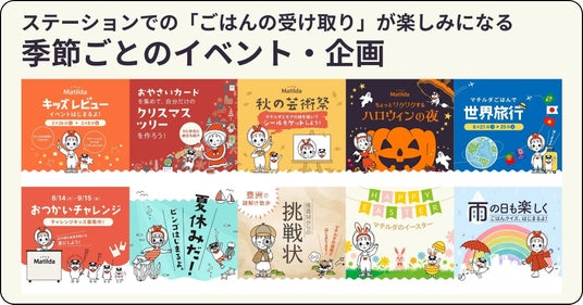 マチルダはオンラインで献立確認や注文、サポートも完結しますが、受け取りステーションでは、子どもたちを主役にした「キッズレビューイベント」「おつかいチャレンジ」などのさまざまなイベント・企画を定期的に実施しています。ステーションは、現在、東京都内を中心に14箇所に設置しています。