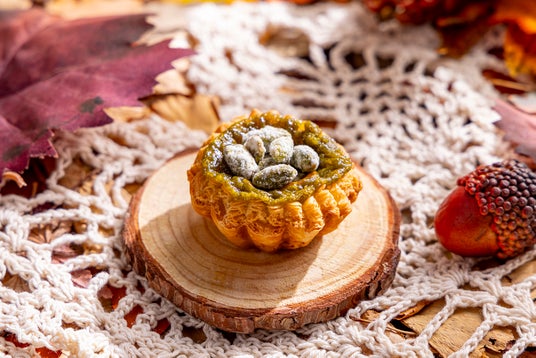 ピスタチオのフラン ピスタチオシュガーコーティング乗せ