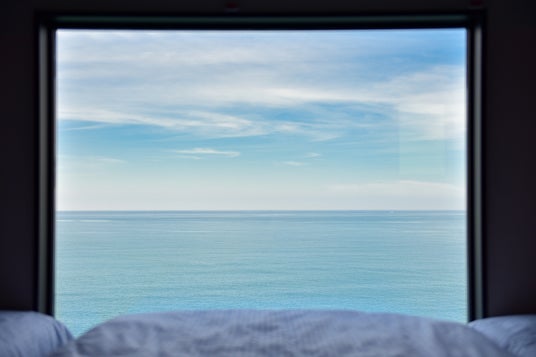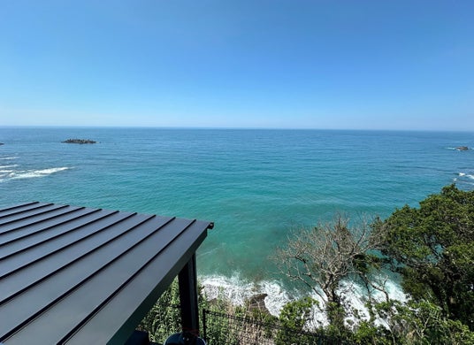 岸壁に寄せる波と水平線を独り占めできるビュー